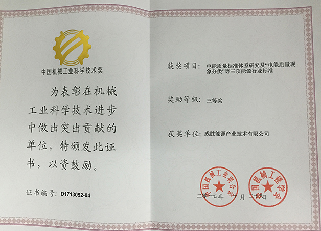 近日,從中國機(jī)械工業(yè)聯(lián)合會獲悉,惟遠(yuǎn)能源參與申報(bào)的《能源電能質(zhì)量標(biāo)準(zhǔn)體系研究及“電能質(zhì)量現(xiàn)象分類”等三項(xiàng)能源行業(yè)標(biāo)準(zhǔn)》項(xiàng)目榮獲中國機(jī)械科學(xué)技術(shù)獎(jiǎng)三等獎(jiǎng),該獎(jiǎng)是我國機(jī)械行業(yè)權(quán)威科技獎(jiǎng)項(xiàng)之一。