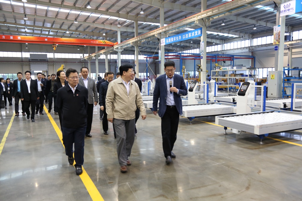 隨后在曾總的帶領下,陳向群副省長一行前往一、二號廠房進行參觀,曾總先后介紹了自動化數控鈑金加工中心、智能化低壓開關柜自動化生產線 、充氣環網柜自動生產線以及智能柱上斷路器生產線,陳向群副省長對威勝電氣車間的產線布局、生產能力給予了充分的肯定,尤其對公司面向智能配用電領域的市場定位表示高度認同,表示擁有最高的自動化水平,定位中高端市場才能更有利于建成國內智能配用電業務領域技術研發水平領先、產品系列完整、工藝流程及設備先進的專業產業園區。