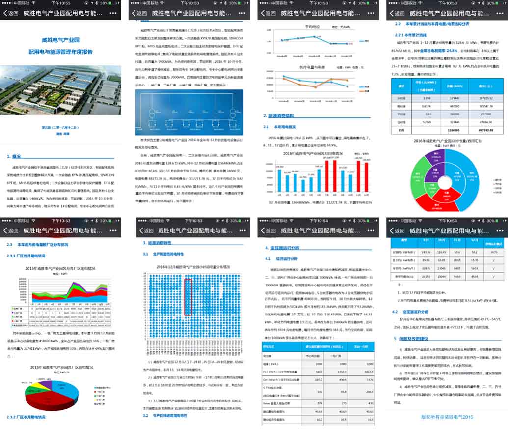 結合大數據的應用,定期針對用戶的配電及能效管理進行總結與分析,并出具相關的智能配電與能效月度、季度、年度分析報告。報告的主要內容為:配電設施與用能的基本概況、能源消費結構與消費特性、主要設備運行分析、用電報裝、相關問題及建議等。